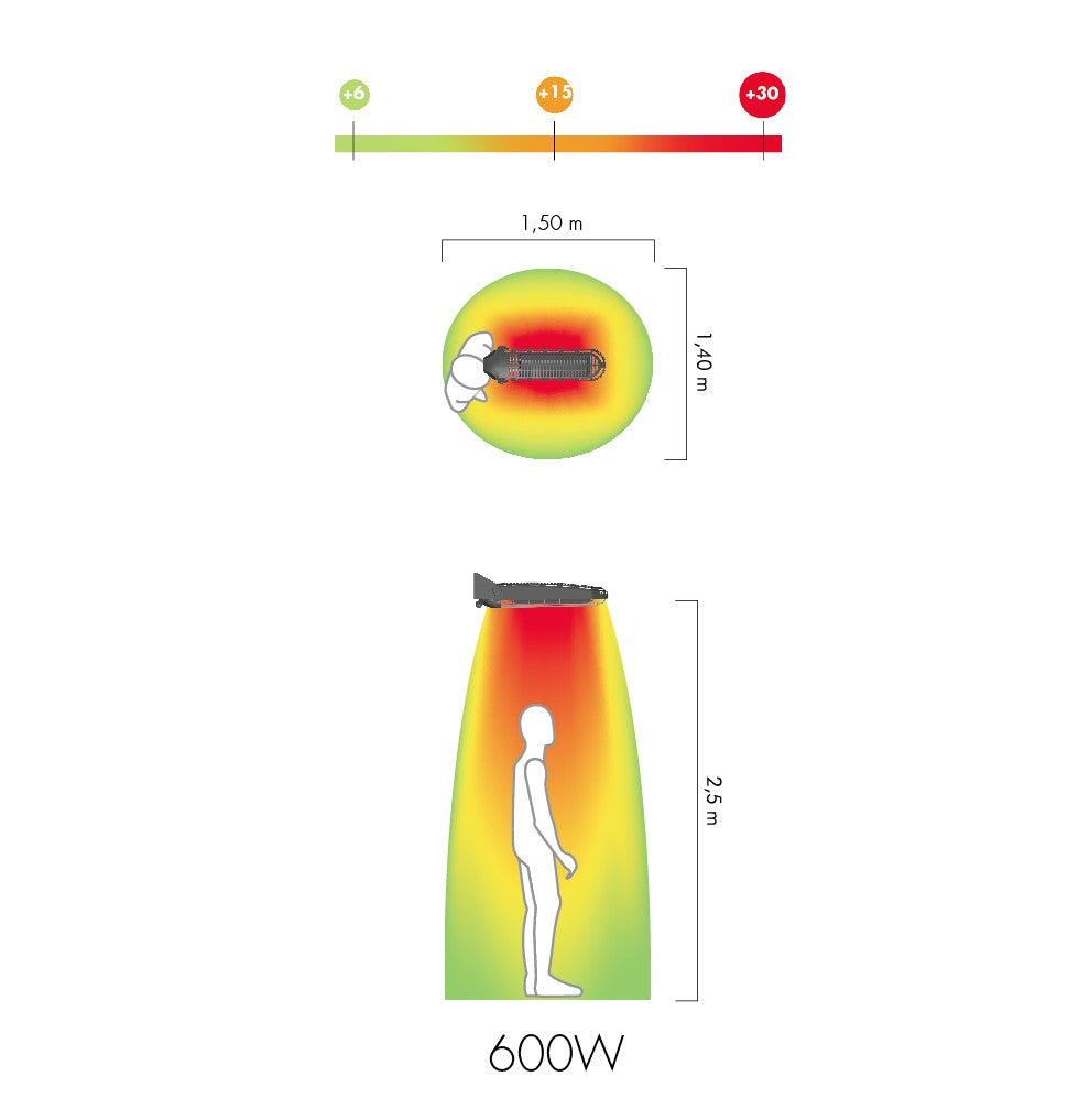 Ideale per chi cerca un riscaldamento efficace, silenzioso e privo di odori, la lampada da 600W garantisce comfort costante in tutte le stagioni e prolunga l’utilizzo degli spazi outdoor.